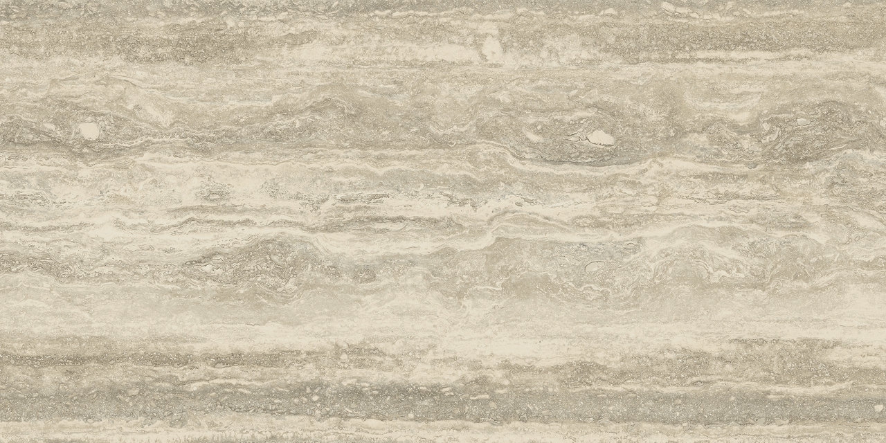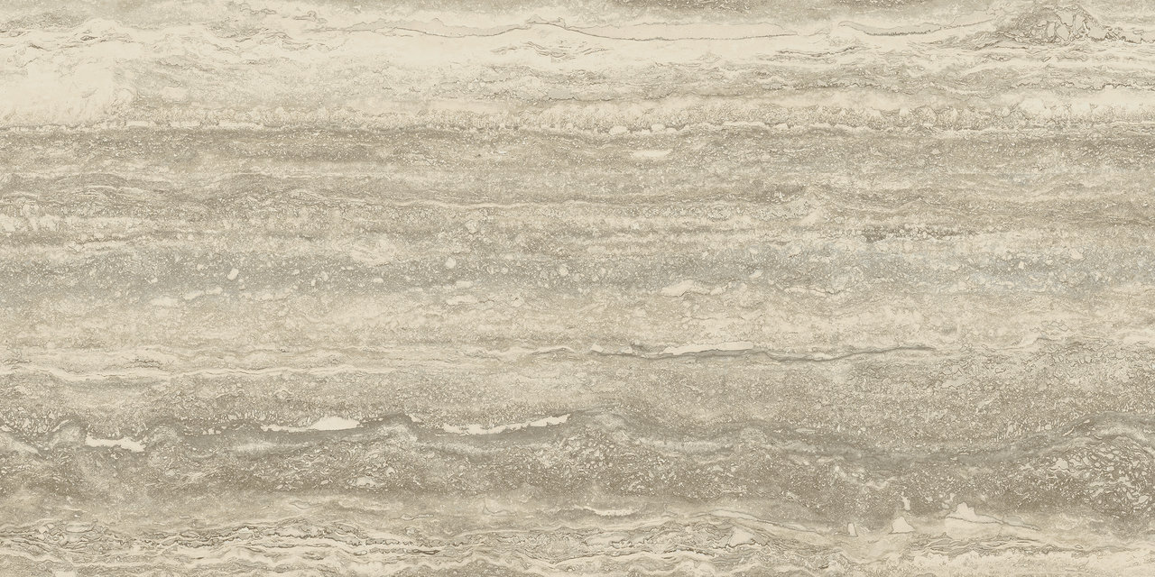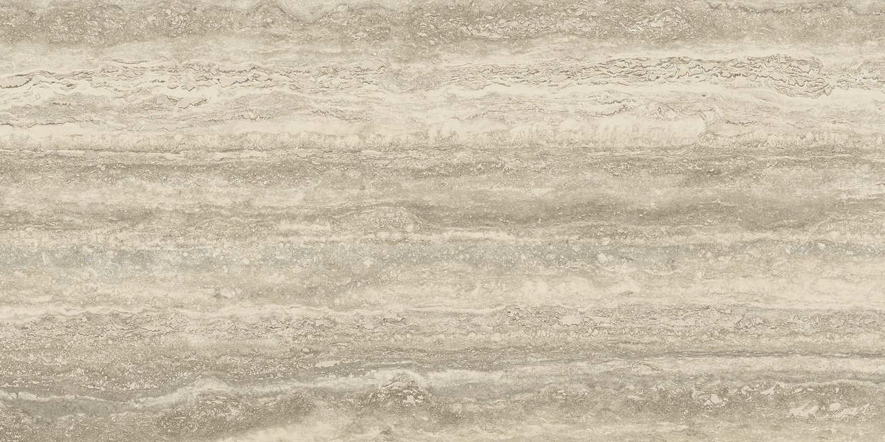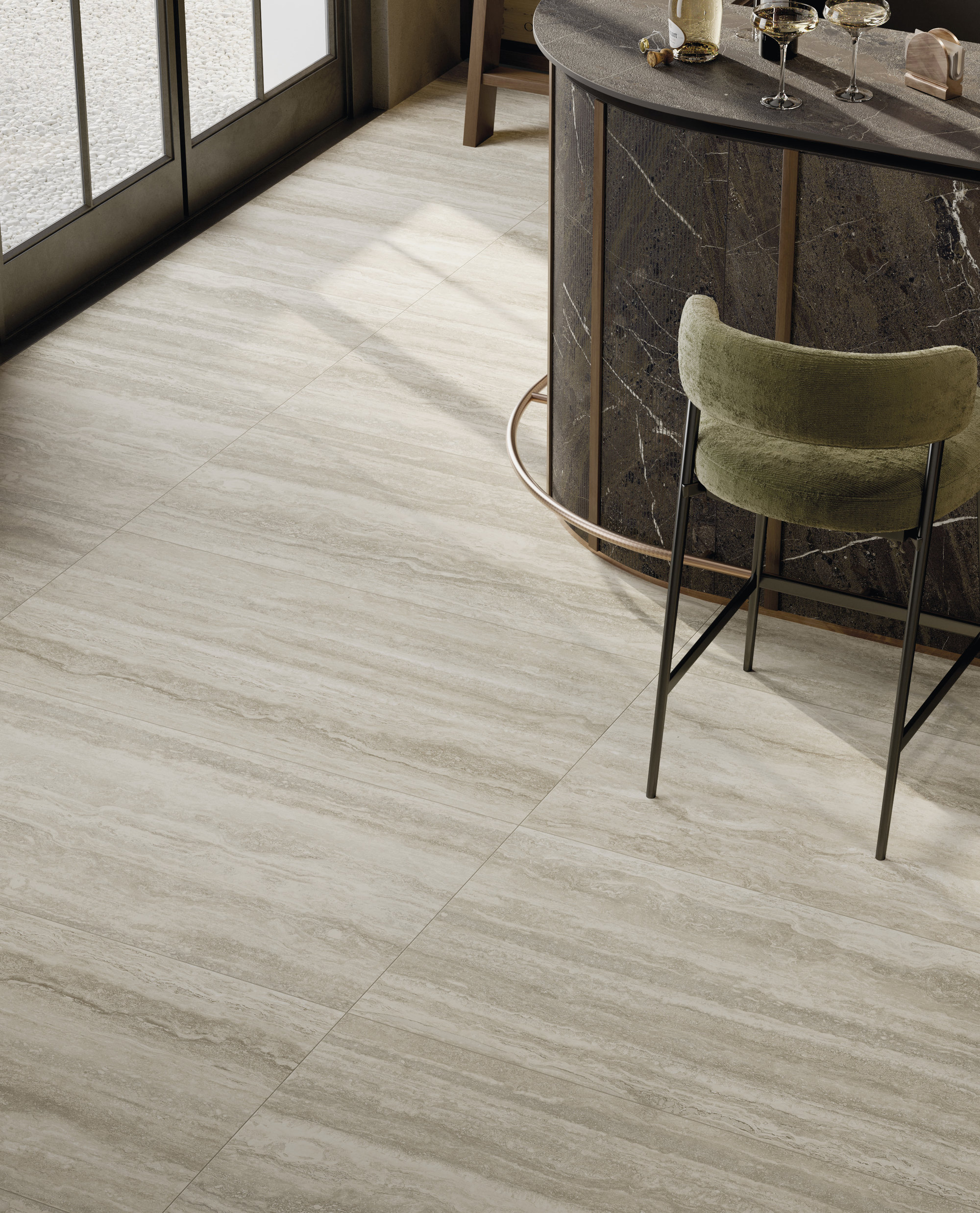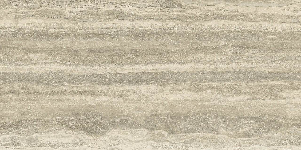 Die Travertino-Oberfläche zeichnet sich durch leichte horizontale Adern aus, die Landschaften erinnern, die vom Lauf der Zeit geformt wurden. Die Palette warmer und neutraler Töne – von Beige über Creme, von Elfenbein bis zu sanften Grautönen – vermittelt ein Gefühl von natürlicher, einhüllender Balance und verwandelt jeden Raum in eine elegante und einladende Umgebung. Ein Material, das das Gedächtnis der Tradition bewahrt und in einer modernen, zeitgemäßen Form präsentiert.