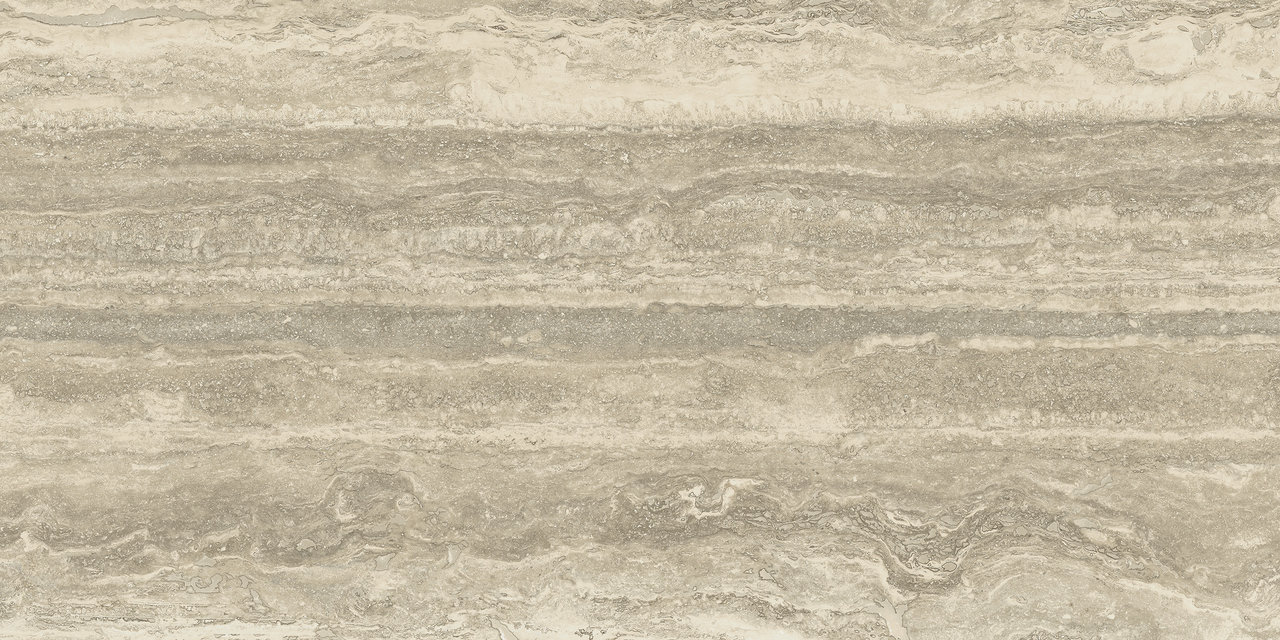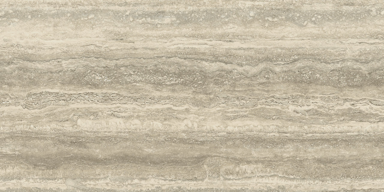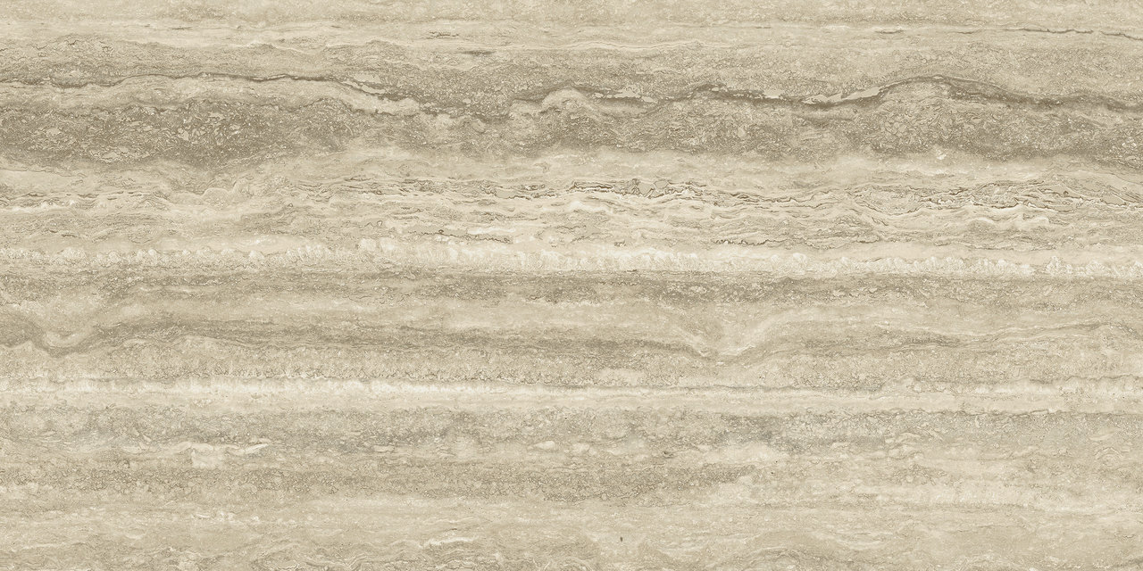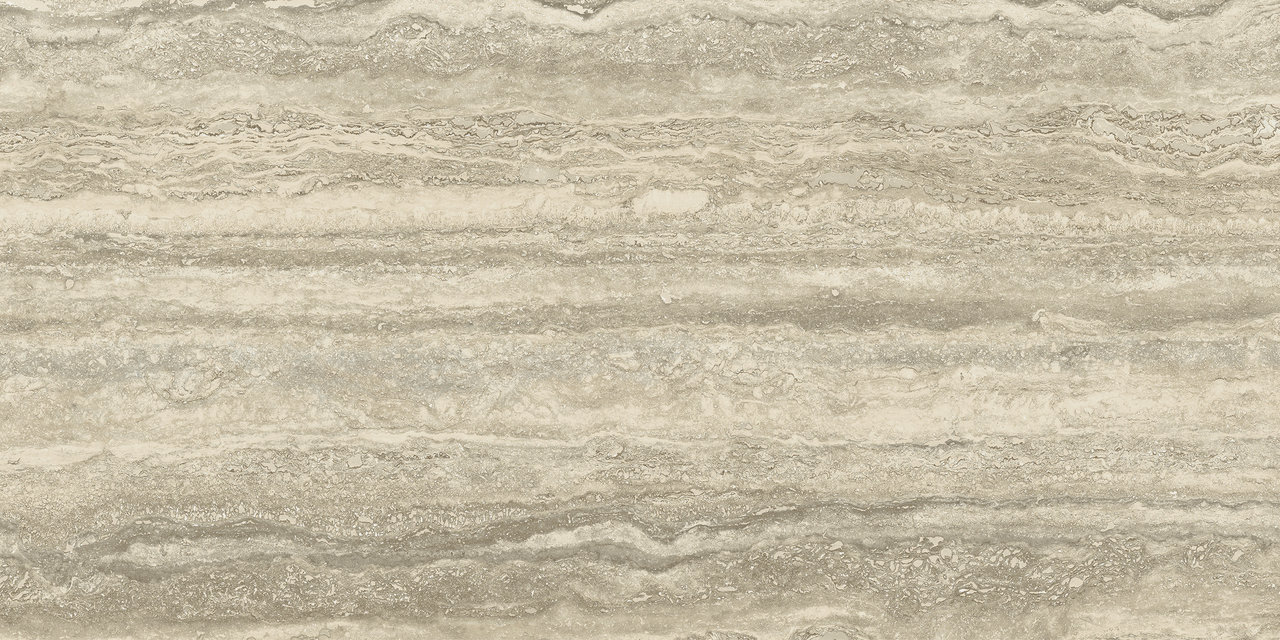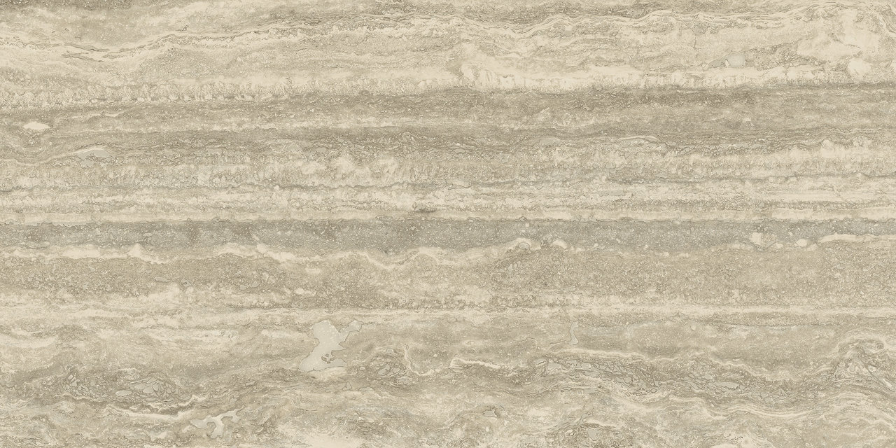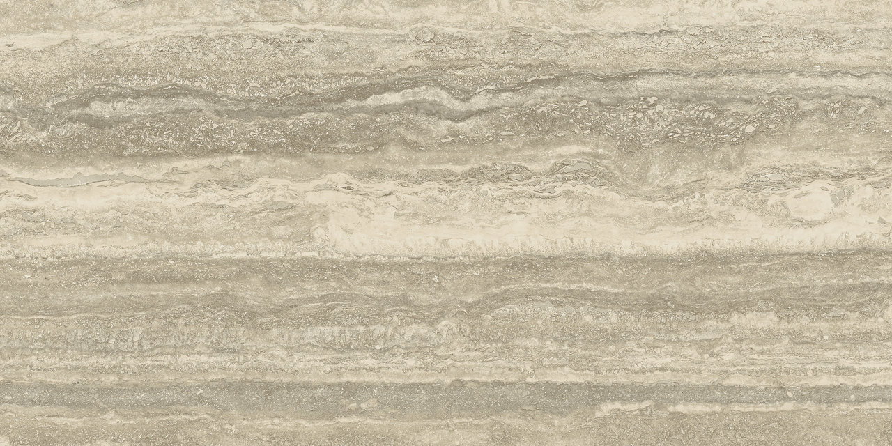 Die Travertino-Oberfläche zeichnet sich durch leichte horizontale Adern aus, die Landschaften erinnern, die vom Lauf der Zeit geformt wurden. Die Palette warmer und neutraler Töne – von Beige über Creme, von Elfenbein bis zu sanften Grautönen – vermittelt ein Gefühl von natürlicher, einhüllender Balance und verwandelt jeden Raum in eine elegante und einladende Umgebung. Ein Material, das das Gedächtnis der Tradition bewahrt und in einer modernen, zeitgemäßen Form präsentiert.