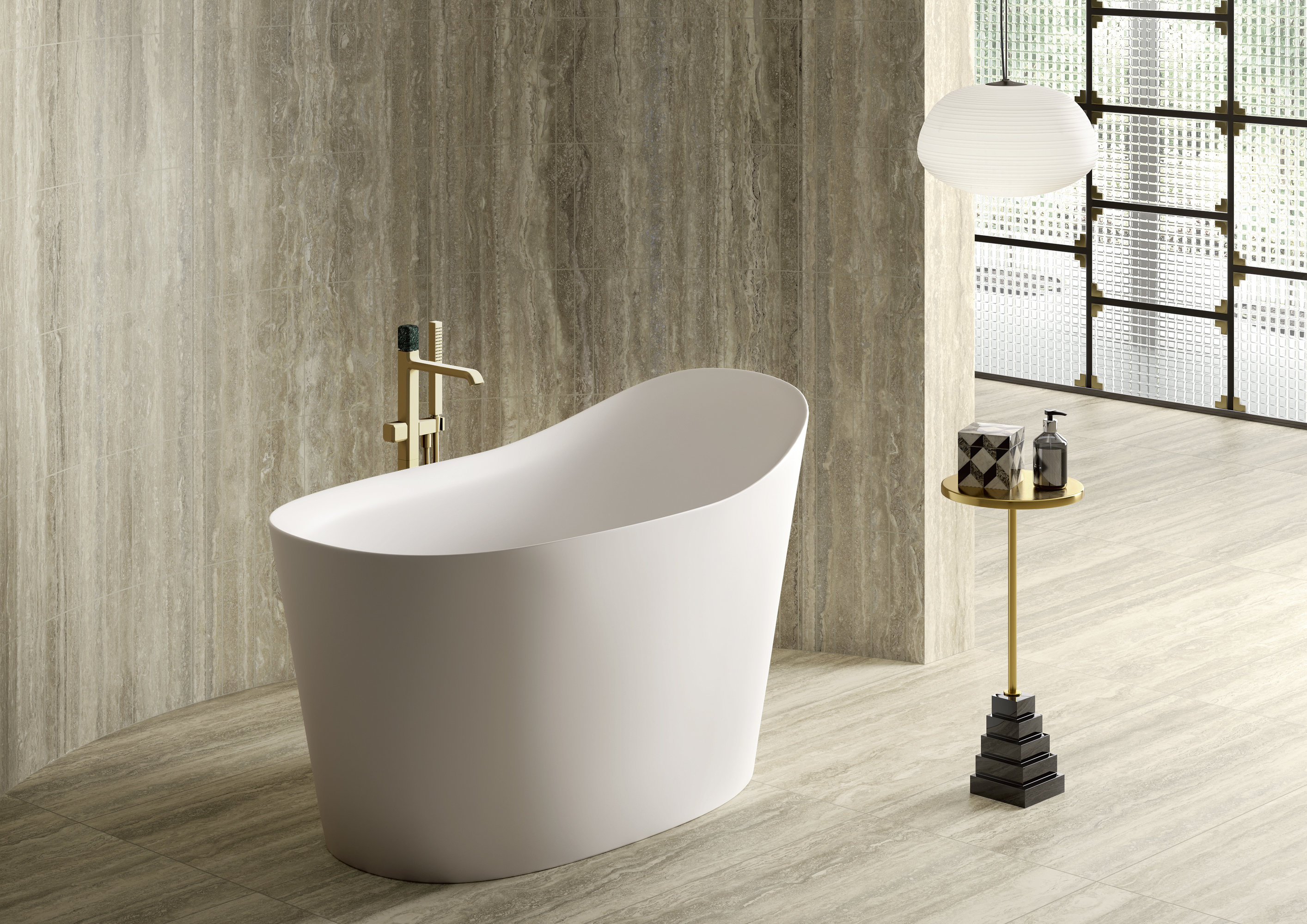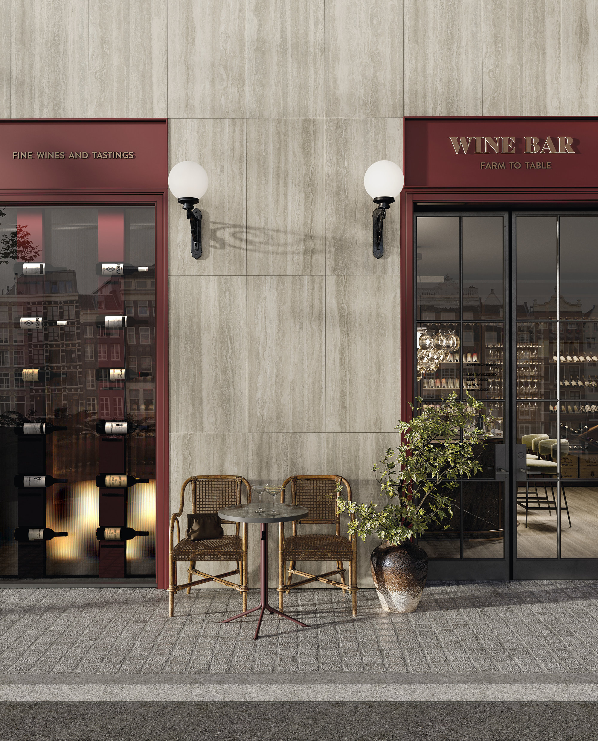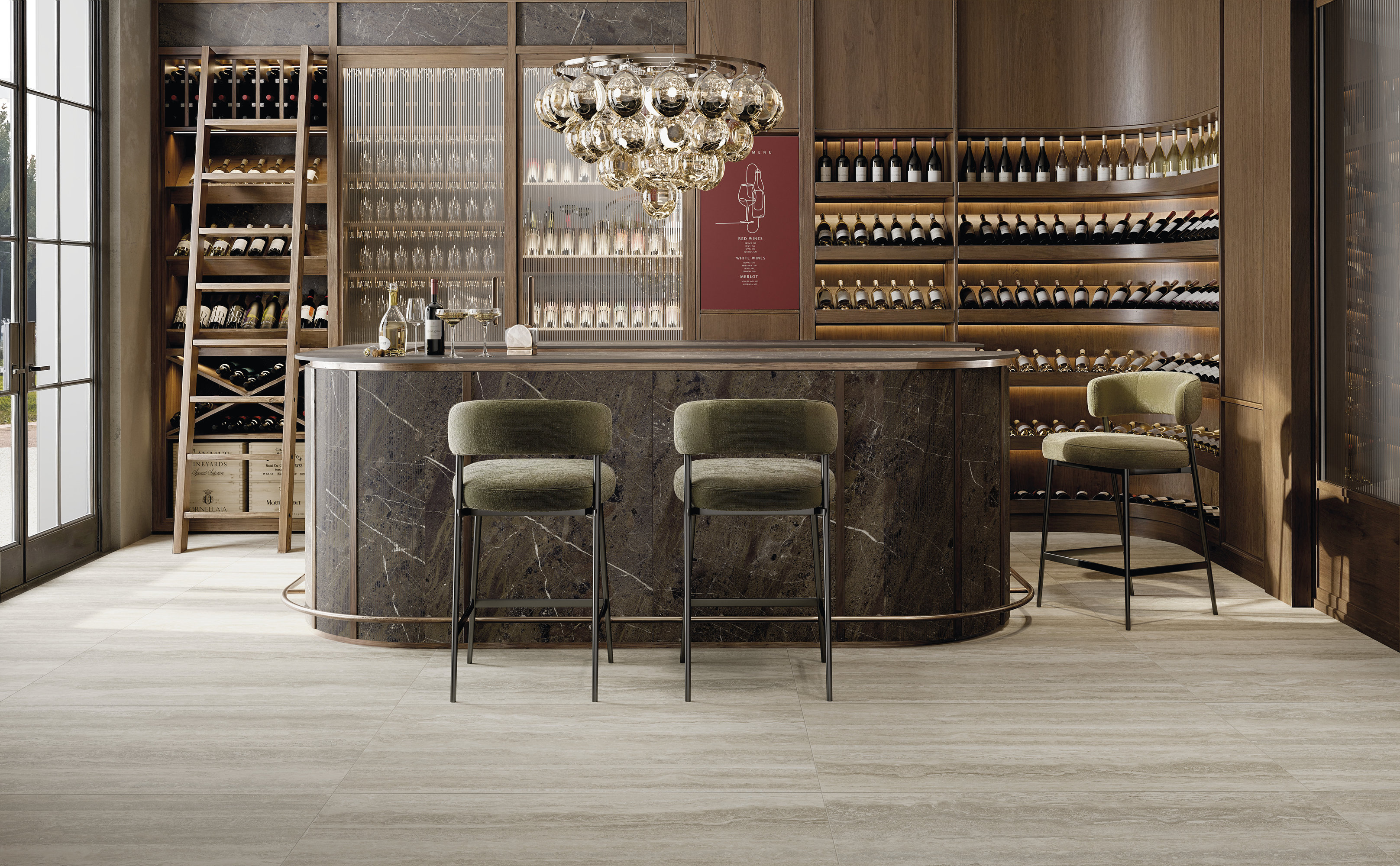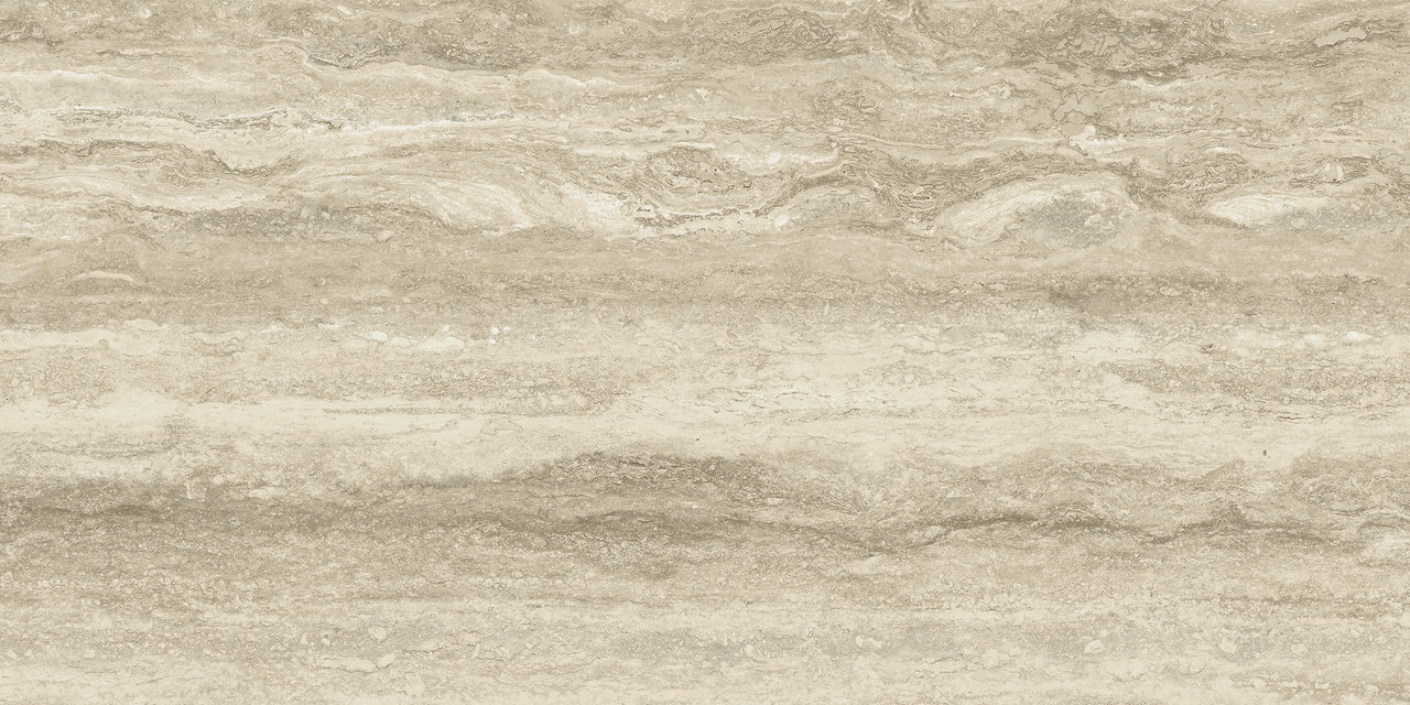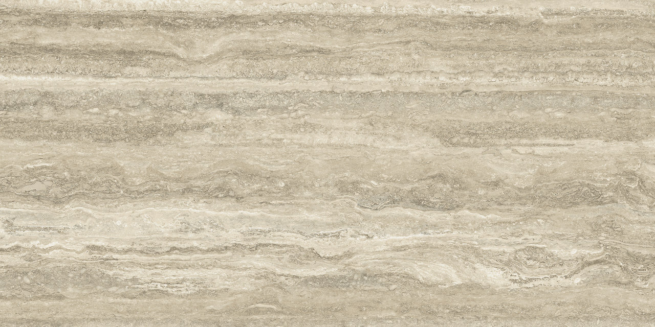 Die Travertino-Oberfläche zeichnet sich durch leichte horizontale Adern aus, die Landschaften erinnern, die vom Lauf der Zeit geformt wurden. Die Palette warmer und neutraler Töne – von Beige über Creme, von Elfenbein bis zu sanften Grautönen – vermittelt ein Gefühl von natürlicher, einhüllender Balance und verwandelt jeden Raum in eine elegante und einladende Umgebung. Ein Material, das das Gedächtnis der Tradition bewahrt und in einer modernen, zeitgemäßen Form präsentiert.