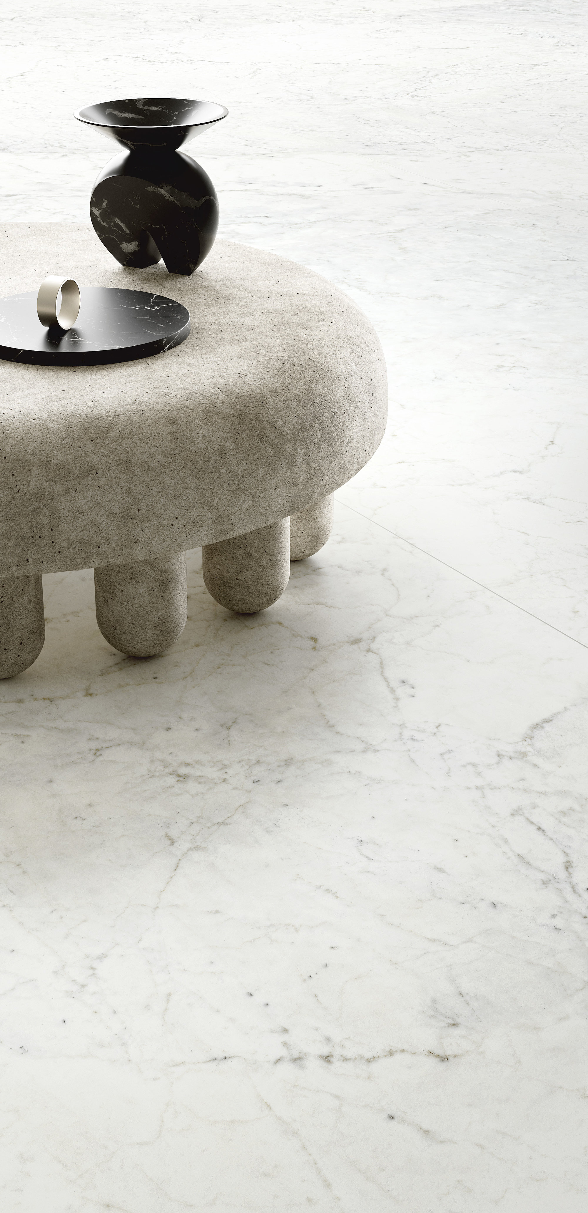 Apuano Purissimo Maximum ist eine Keramikoberfläche von außergewöhnlicher Eleganz, verstärkt durch eine einzigartige Helligkeit, die sie ideal für hochwertige Projekte macht. Der weiße Untergrund, veredelt mit feinen hellgrauen Adern, die sanft in Schattenbereiche übergehen, verleiht Raffinesse und natürliche Harmonie. Erhältlich in den Oberflächen Polished und Natural, eignen sich die großen Formate und die geringe Dicke nicht nur für Böden, Wände und Fassaden, sondern auch für maßgefertigte Möbel und architektonische Elemente.