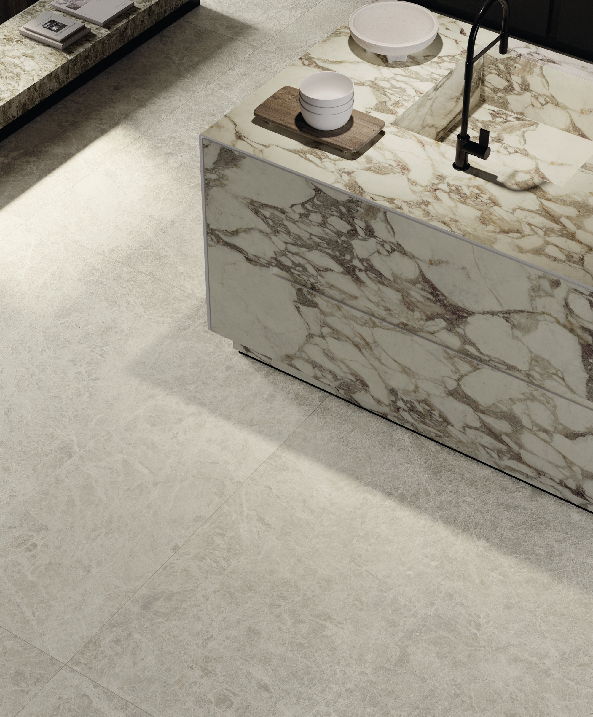Dama Bianca Maximum ist ein Farbton, der schlichte und reine Eleganz vermittelt. Mit ihrem vollendeten Weiß, das von verwobenen Äderungen im selben Farbton durchzogen wird, gehört diese Textur zum gehobenen Stil. Klar und wellenförmig, besticht sie durch einen perlfarbenen Grundton, der Reinheit und Weitläufigkeit ausstrahlt, die dekorativen Elemente betont und sie zum Leuchten bringt. Die Ausführung Natural verleiht der keramischen Oberfläche einen matten, leicht materiellen und haptisch angenehmen Effekt.