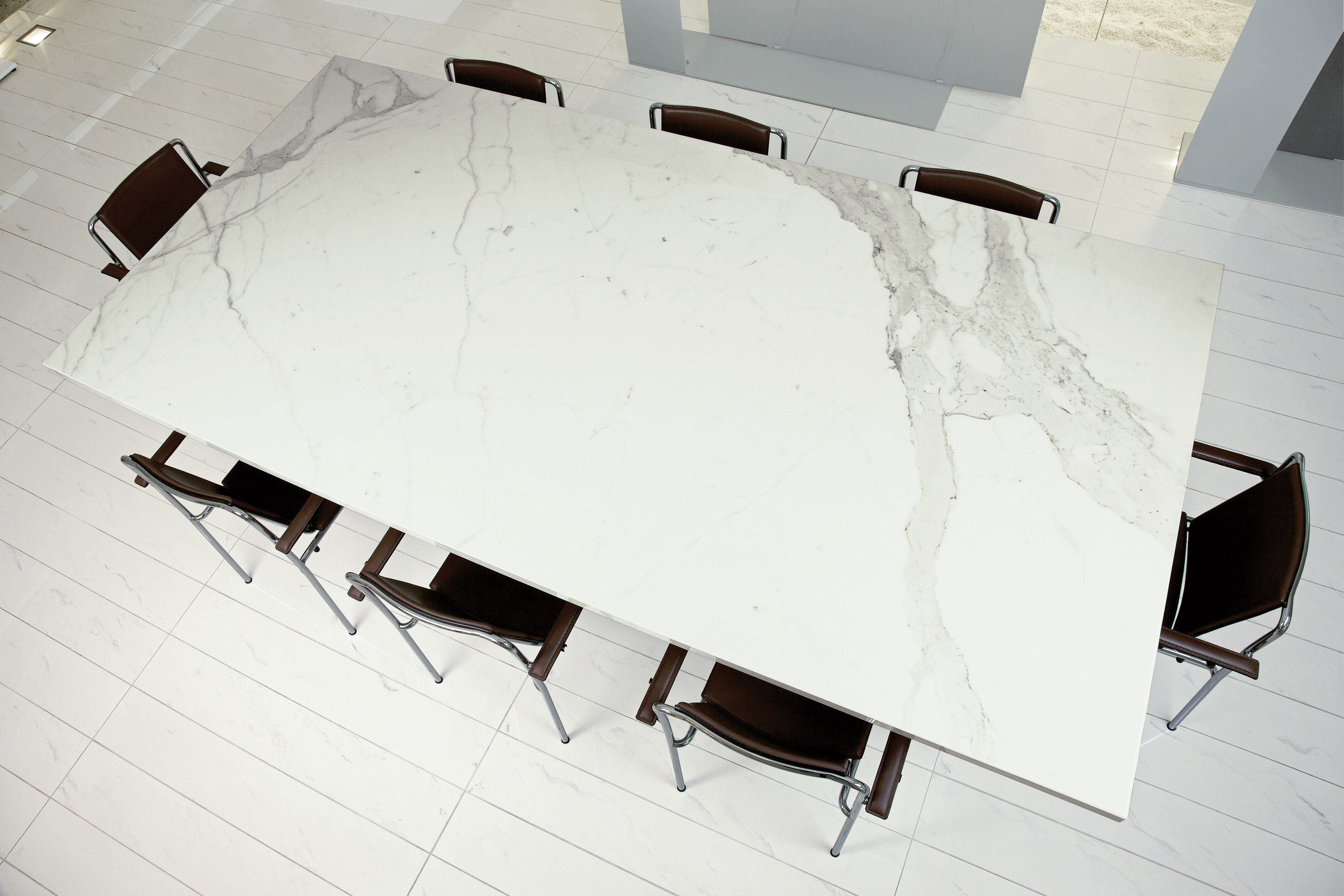 Der unverwechselbare Geschmack der Klassik: eine wertvolle und dekorative Lösung, bereichert durch einzigartige Farbintensitätsnuancen und stets unterschiedliche Aderungen. Die Polished-Oberfläche verleiht der Textur Helligkeit und Glanz, während die Natural-Oberfläche ein mattes, moderneres Erscheinungsbild bietet. Für höchste Leistungsanforderungen ist sie auch mit Active Surfaces-Technologie erhältlich, die antibakterielle, antivirale, umweltreinigende, geruchsbindende und selbstreinigende Eigenschaften bietet.