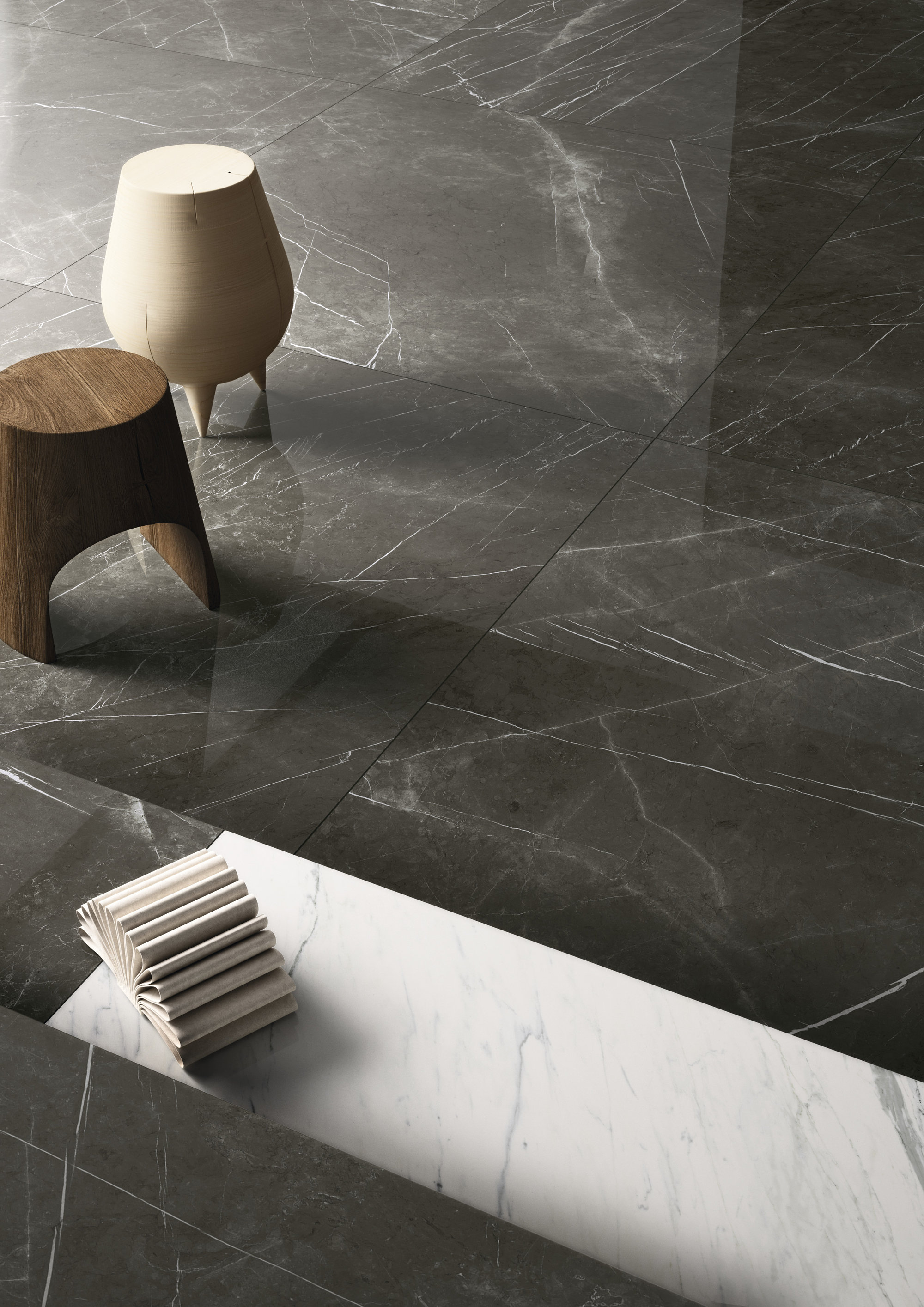 Der raffinierte dunkelbraun-anthrazitfarbene Hintergrund wird von feinen, reinen weißen Adern durchzogen, die dem Produkt eine harmonische Ästhetik und vielseitiges Nutzungspotenzial sowohl in Bezug auf Stil als auch Anwendung verleihen. Unverwechselbarer Stil, exquisite Verarbeitung und hohe Leistung machen Pietra Grey zu einer unverzichtbaren Oberfläche zur Aufwertung von Architektur- und Interior-Design-Projekten. Pietra Grey und generell alle MAXIMUM-Produkte lassen sich leicht bearbeiten, was dem Designer maximale gestalterische Freiheit bietet und es Innenarchitekten ermöglicht, Total-Look-Lösungen zu realisieren, die eine vollständige ästhetische Kontinuität zwischen Boden, Wand und Einrichtung gewährleisten. Für fortschrittliche Leistung ist sie auch mit Active Surfaces-Technologie erhältlich, mit antibakteriellen, antiviralen, umweltschützenden, geruchsresistenten und selbstreinigenden Eigenschaften.