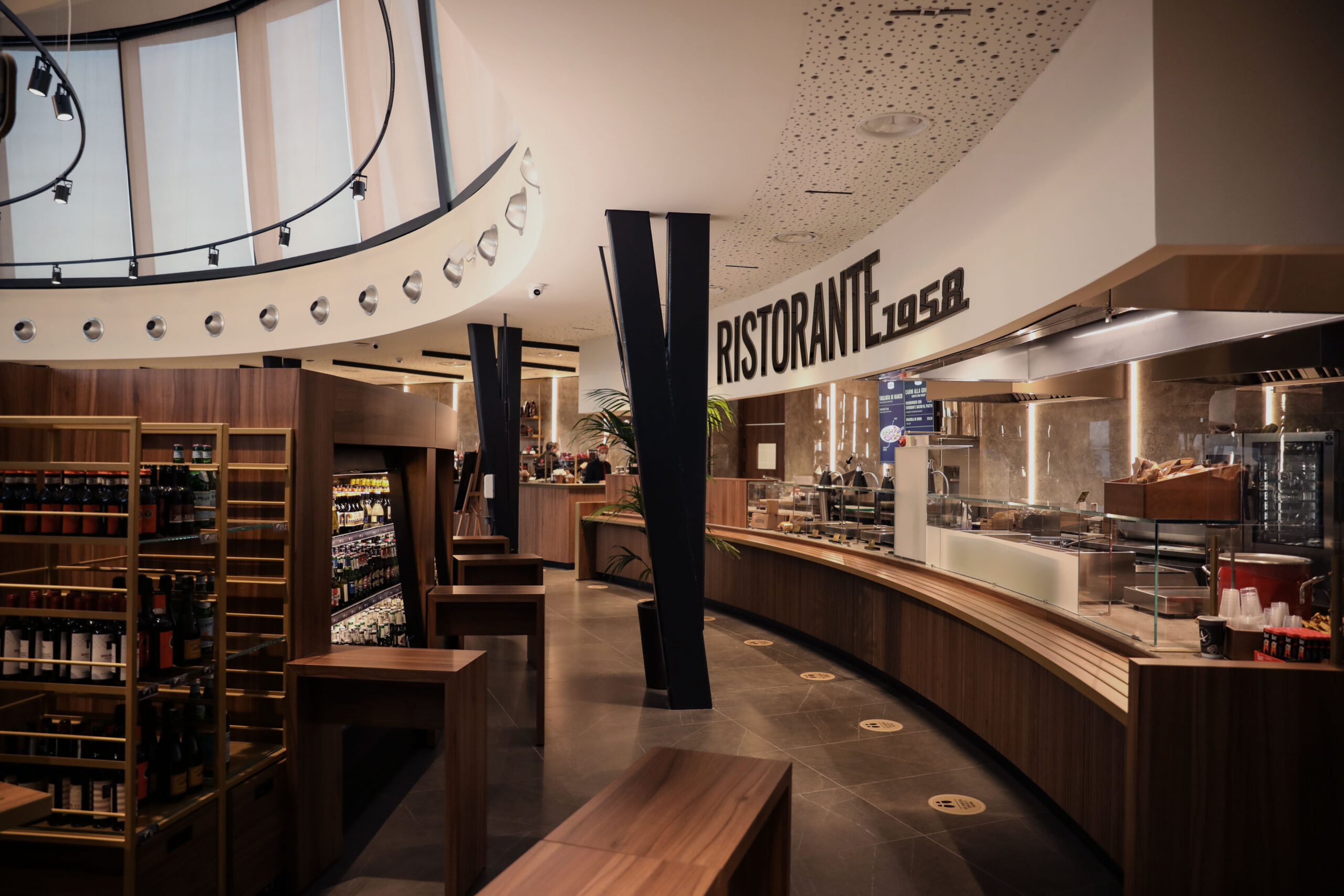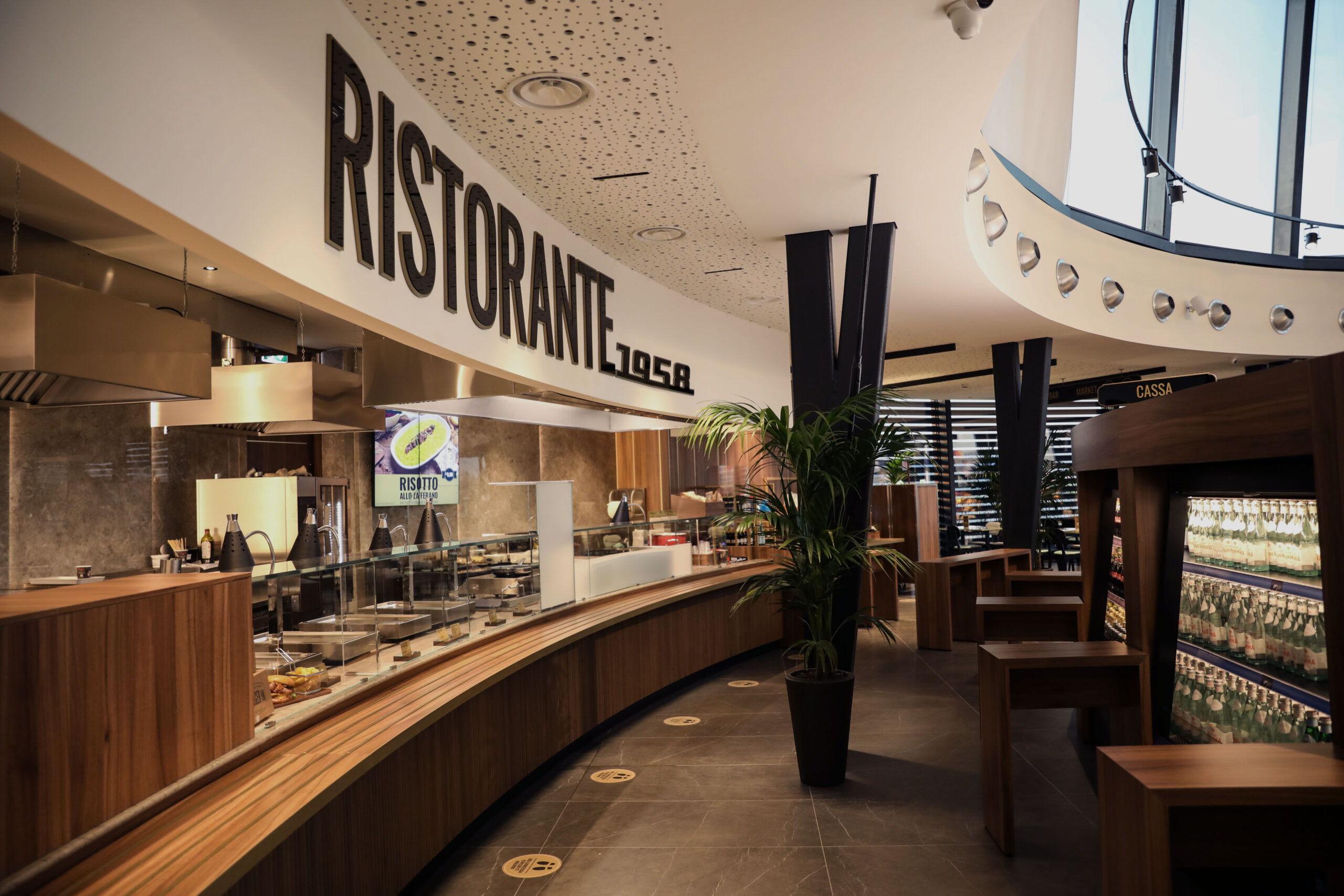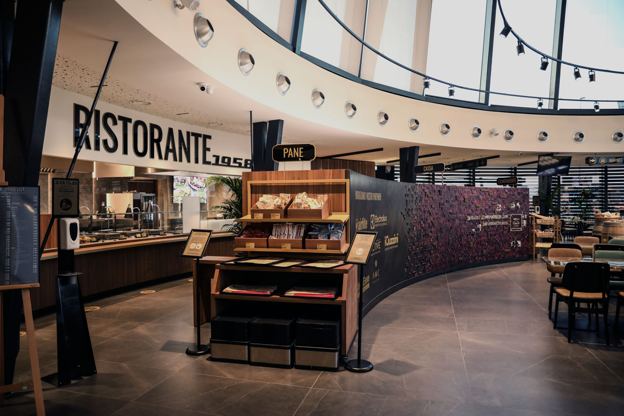 Beim Durchschreiten der Räume spürt man das Echo einer Ära großer gestalterischer Experimente, heute neu interpretiert durch hochwertige Materialien, Licht und Proportionen. Ein Ort, der italienisches Design, Innovation und das Erlebnis der Reisenden feiert und jeden Halt zu einer kleinen Reise durch die Architekturgeschichte macht.