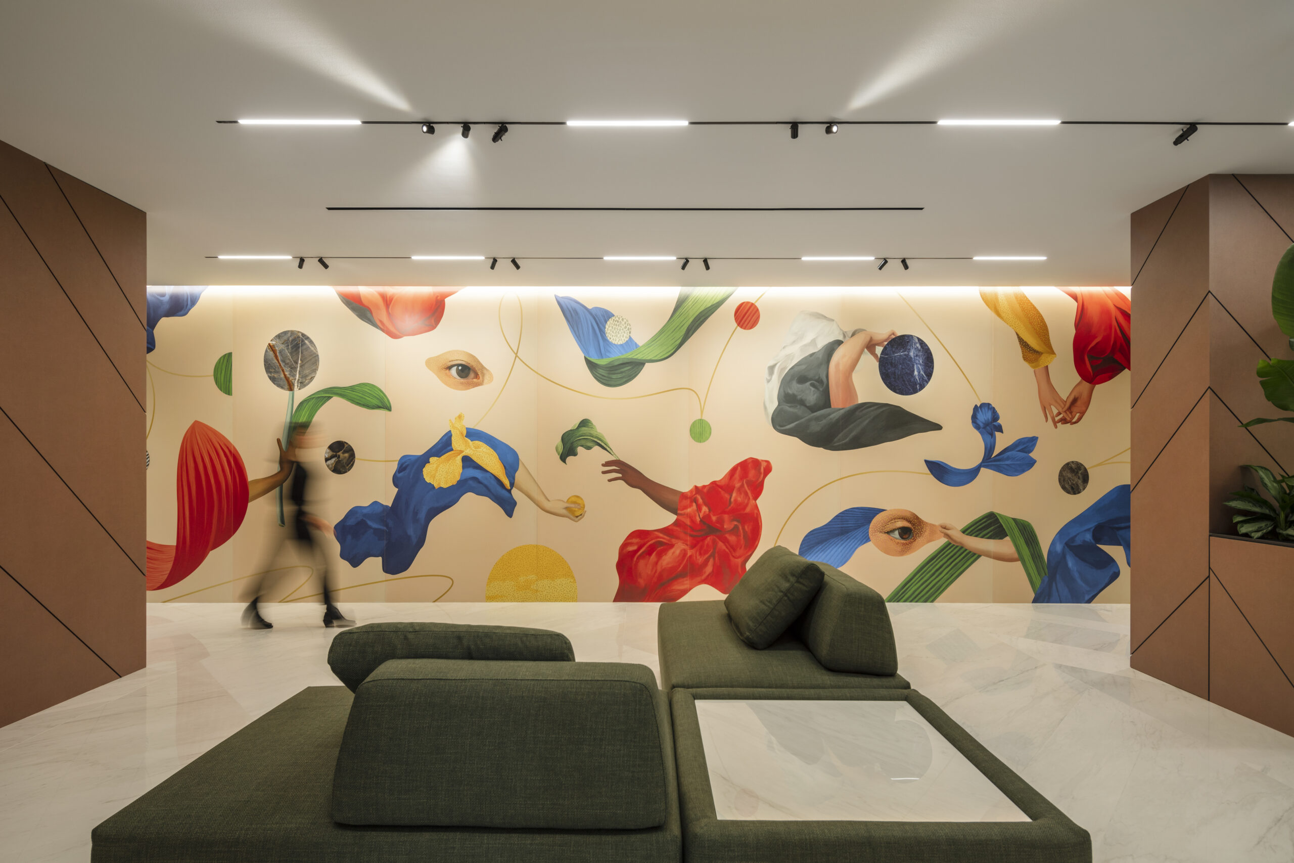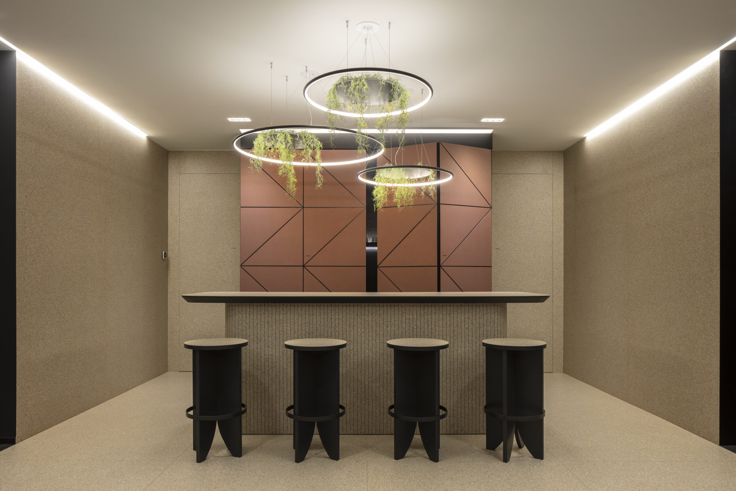Das Projekt setzt auf natürliches Licht, akustischen Komfort, Chromotherapie, Modularität und gemeinschaftliche Nutzung und verwandelt das Büro in einen echten Living Place.