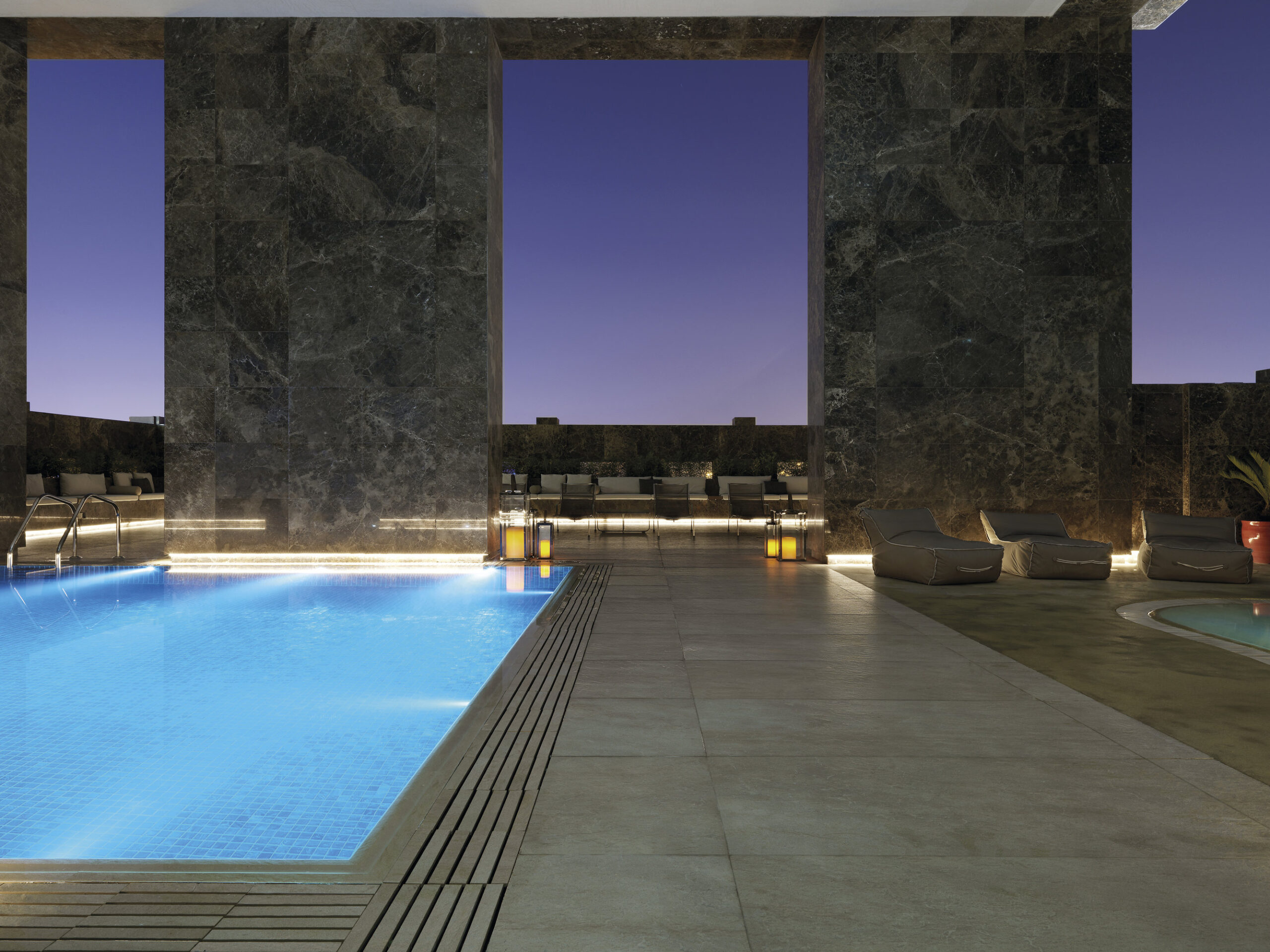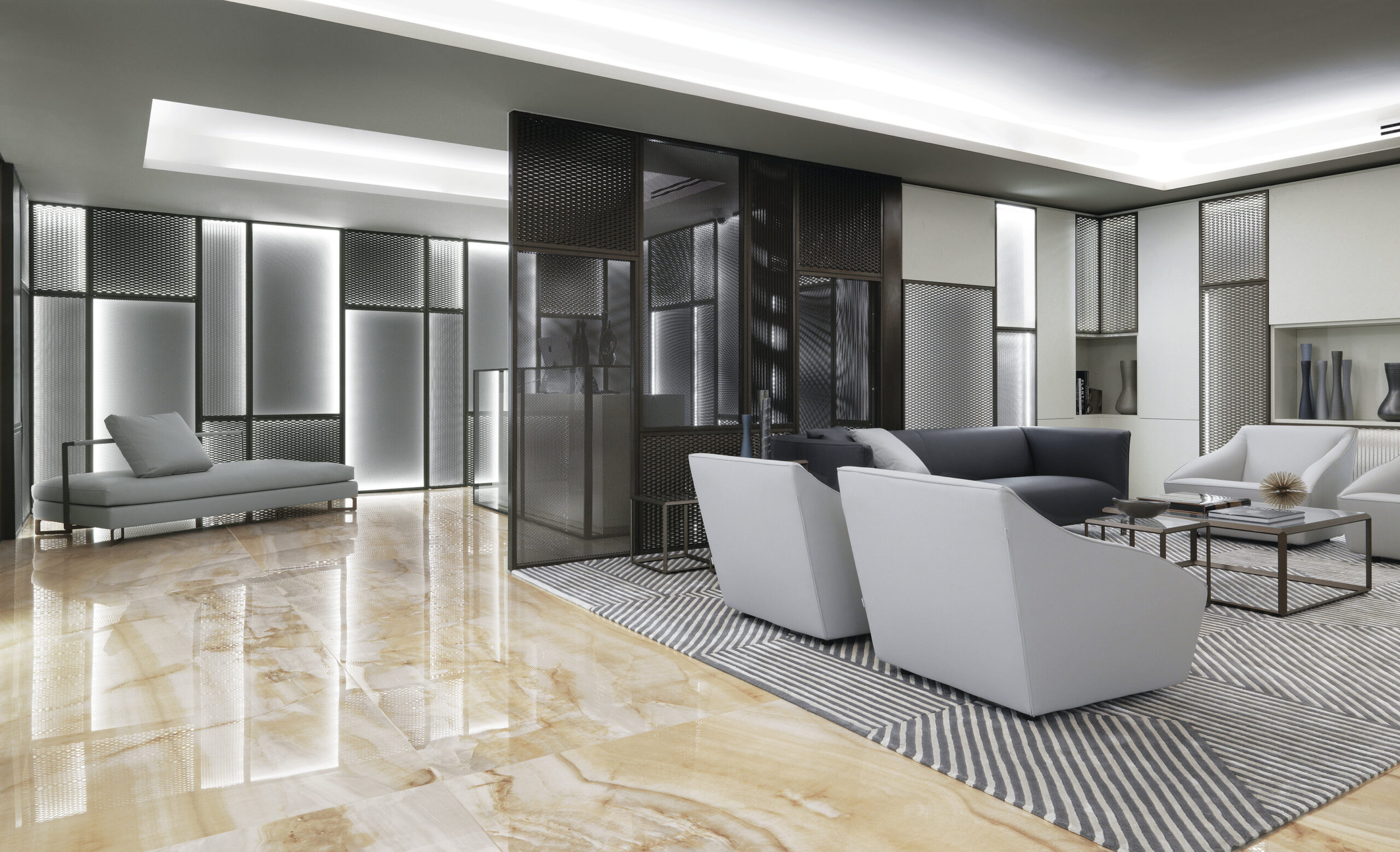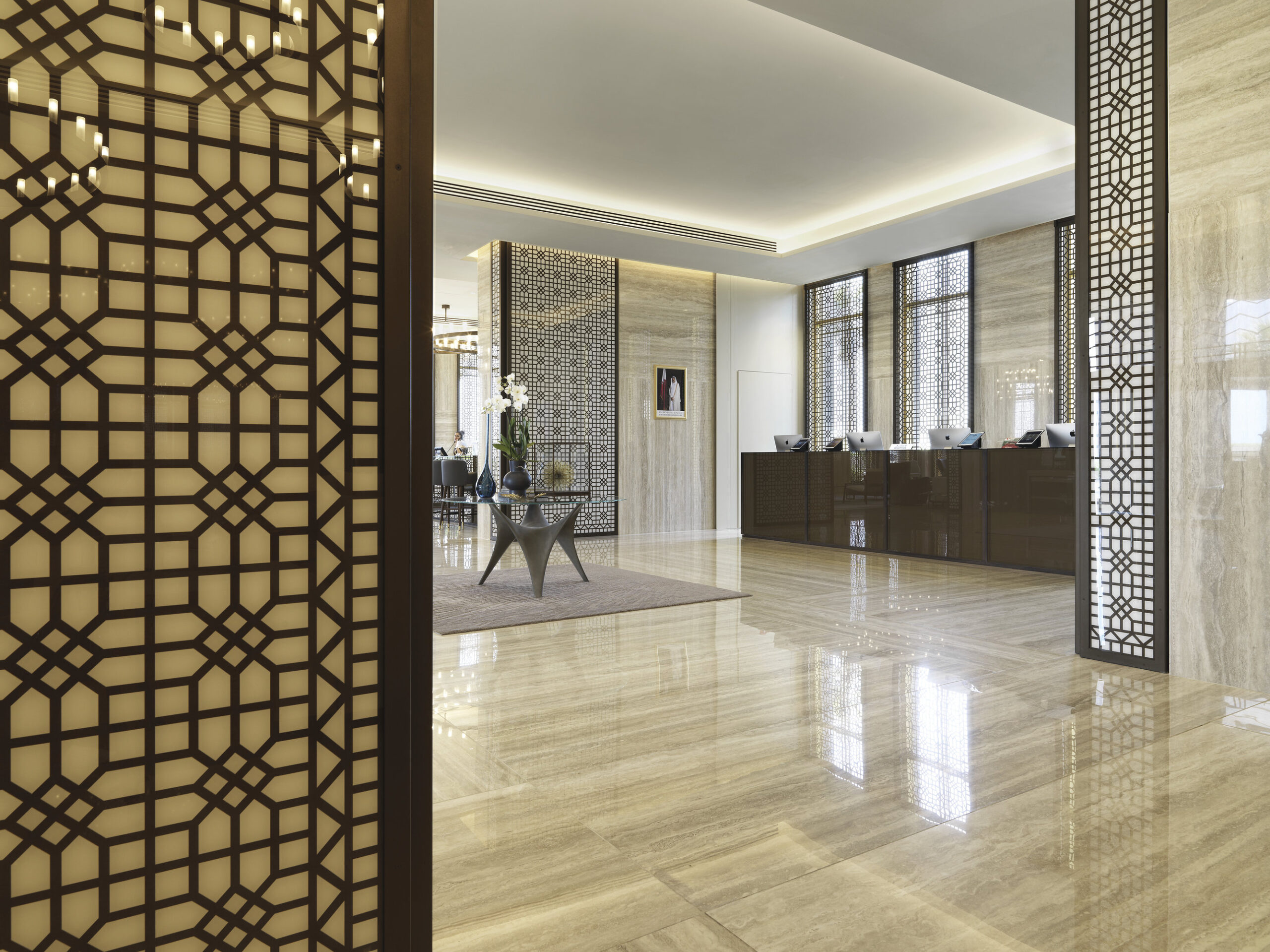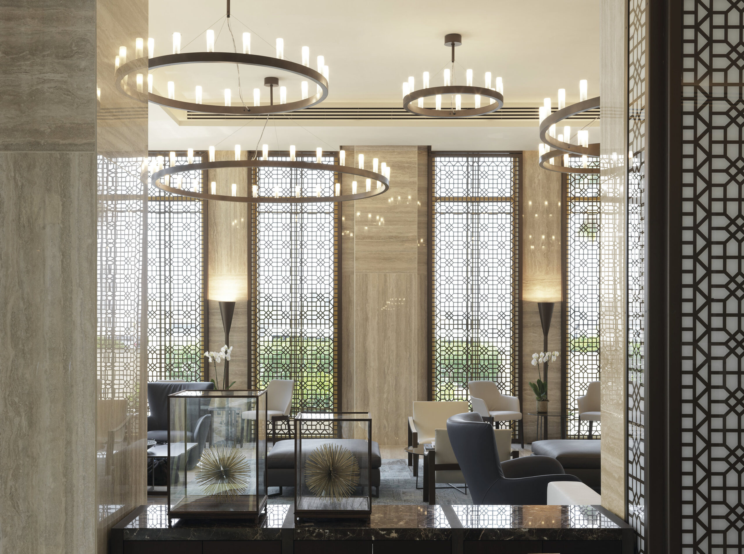 Das Konzept verbindet die Tradition des Nahen Ostens mit zeitgenössischem Design und schafft anspruchsvolle und funktionale Räume. Für dieses Projekt arbeitete Nunziati mit Spitzenmarken zusammen, darunter Fiandre, das großformatige Keramikoberflächen für die prestigeträchtigsten Bereiche lieferte.