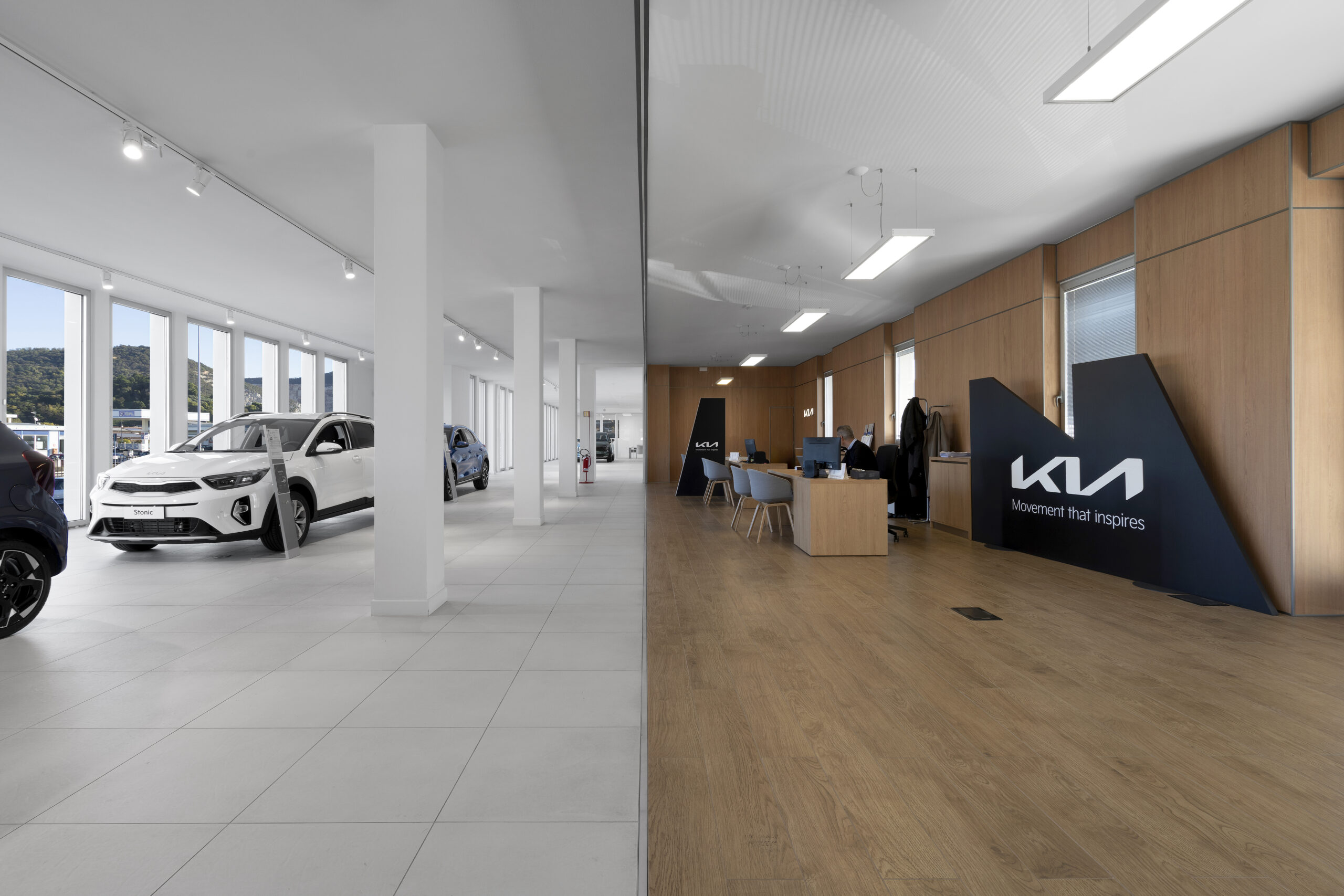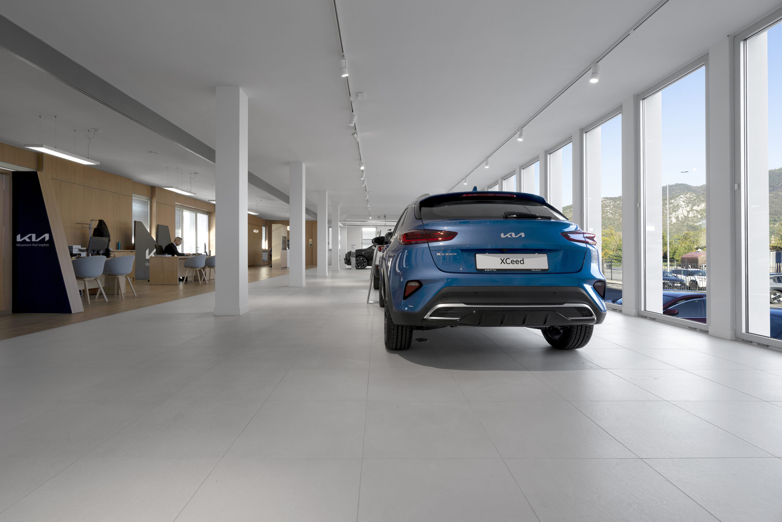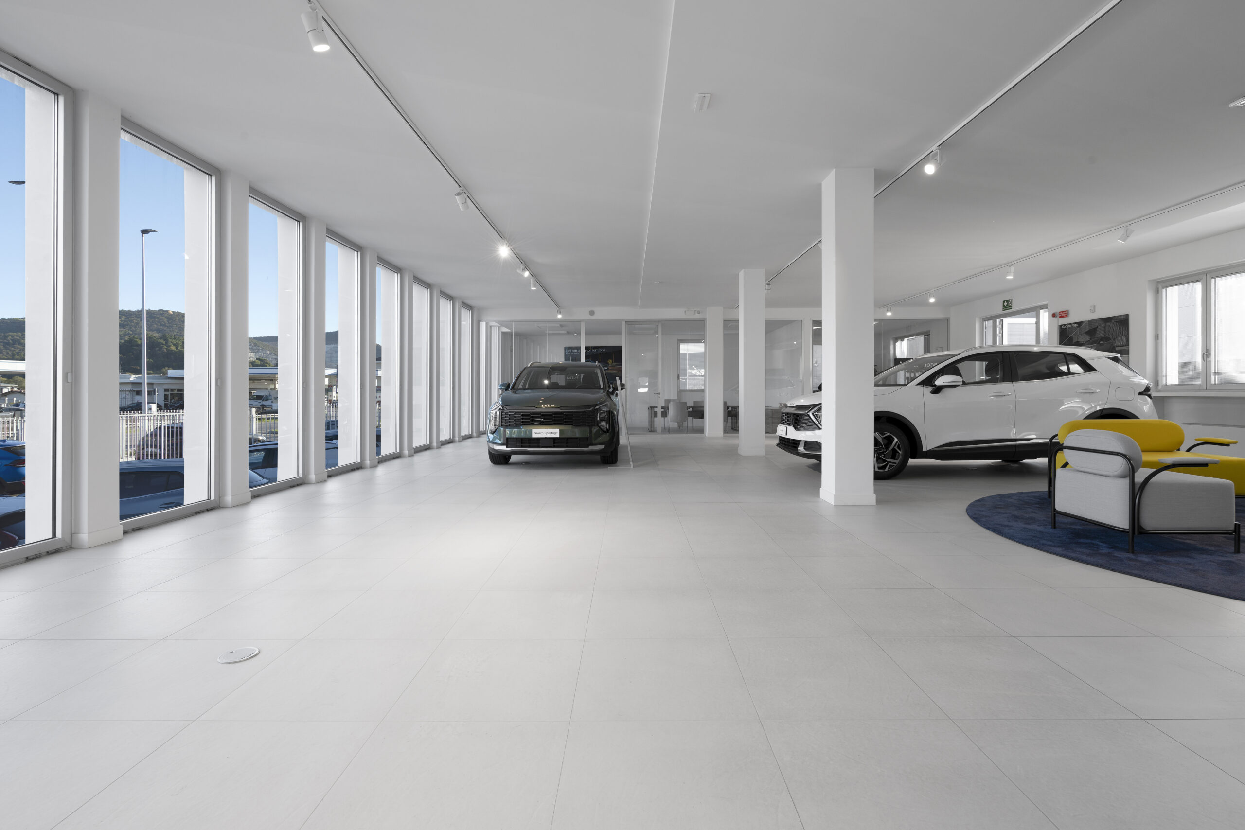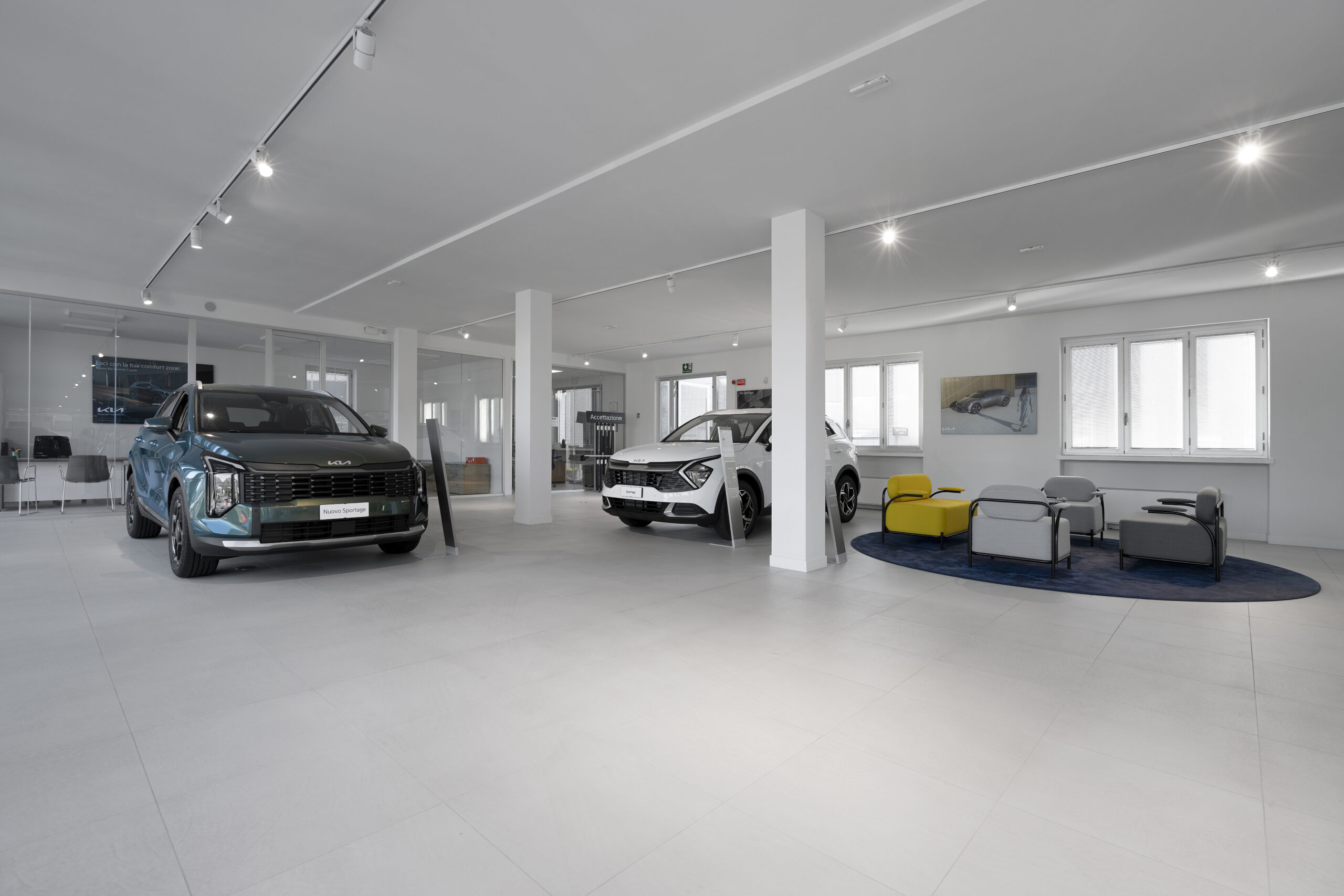 Der neue Raum ist darauf ausgelegt, ein komplettes und anspruchsvolles Kundenerlebnis zu bieten, indem Showroom, Werkstatt und After-Sales-Bereich in einer einzigen modernen und funktionalen Struktur integriert werden. Ein besonderes Merkmal des Retail-Konzepts ist die Verwendung von Fiandre-Keramiken, die dazu beitragen, die ausgestellten Fahrzeuge hervorzuheben und einen eleganten und anspruchsvollen Hintergrund zu schaffen, der die Linien und Details der Autos betont. Ziel ist es, jedem Besucher das Gefühl zu geben, Teil einer exklusiven, einladenden und hochprofessionellen Umgebung zu sein, in der jedes Element des Raums dazu beiträgt, das Produkt in Szene zu setzen.