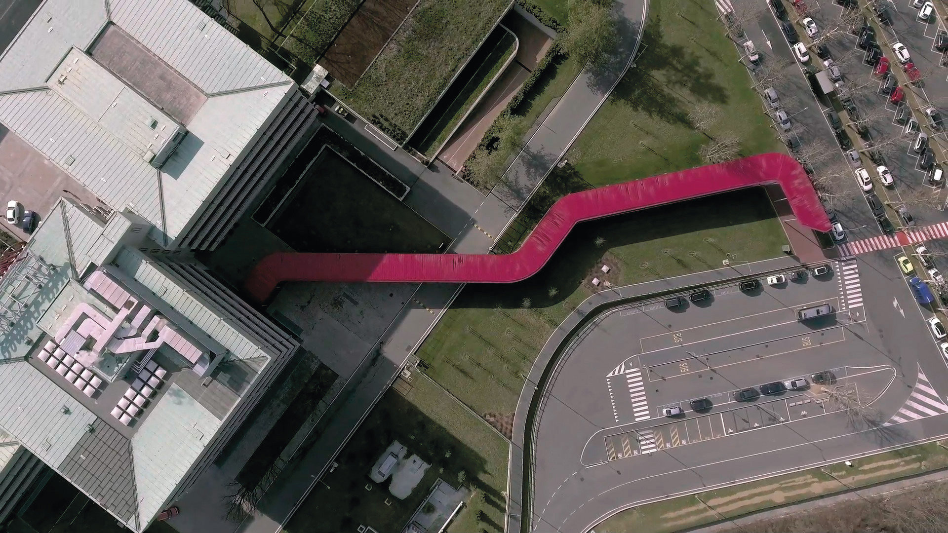 Ein helles „neues Alfa-Rot“ kündigt laut vernehmlich, dennoch ruhig und unaufdringlich als Auftaktnote, auf der fernen Schnellstraße die Wiedergeburt an – die elegante Schönheit der schlanken, filigranen und kompakten Bauform ist Ausdruck einer unverwechselbaren Unternehmensidentität. Mit schwungvollen Kurven, schwelgerisch in eine ausdrucksstarke Formensprache transformiert, gleitet das „Markenzeichen“ in die vorhandene Silhouette, inder es mit seiner geschmeidigen, rastlosen Form Spannung und Dynamik erzeugt. Benedetto Cameranas Helligkeit durchbricht die ursprüngliche Struktur der Gebrüder Latis und verleiht ihr Auftrieb, indem sie eine strategische Verbindung zur traditionellen Exzellenz herstellt und ihr eine stolze Überhöhung verschafft. Ein metallicrotes Vordach – mit der Alfa Romeo „Biscione“ – erstreckt sich über das gesamte Gebäude und verleiht der formalen, grauen Eintönigkeit der historischen Industrieumgebung neue Vitalität, die unter der Leitung der örtlichen Denkmalschutzbehörde sorgfältig instand gesetzt und umqualifiziert wurden. Da die alte Verlaufsanordnung komplett modifiziert wurde, markiert der „rote Faden“ als Leitmotiv die neue Route. Die subtile, elegante Geste, verführend und faszinierend zugleich, begrüßt die Besucher am neuen Eingang auf der Nordseite und führt sie zum diametral gegenüberliegenden Teil mit der Ausstellung. Das Innere des Museums ist in drei verschiedene, spiralförmig aufsteigend angeordnete Bereiche gegliedert, die auf den drei Leitprinzipien basieren und strategisch und szenografisch das Wesen des Unternehmens erläutern: Timeline portraitiert die historische und industrielle Kontinuität der Marke, Beauty befasst sich mit klassischem und modernem Design, und Speed präsentiert ausgeprägte technologische Forschung und Leichtigkeit. Der Rundgang endet in einem Multimediaraum mit Virtual-Reality-Filmen in 360-Grad-Projektion. In der ersten Etage findet man ein vielfältiges Sortiment an begleitenden Serviceleistungen, einem Archiv, einem Buchladen, Geschäften, Cafés, Veranstaltungsräumen, einem Dokumentationszentrum sowie einem Ausstellungsraum mit Auslieferungsbereich und Prüfstrecke.