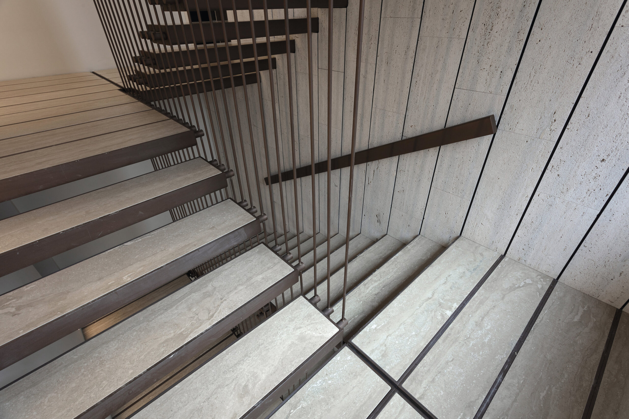 Im Innen- und Außenbereich zeigt sich die Detailgenauigkeit: Fensterrahmen, Öffnungen und das Verhältnis von Voll zu Leer sind sorgfältig ausbalanciert, um Leichtigkeit und Eleganz zu erzeugen. Das Ergebnis ist eine Residenz, die eine Atmosphäre von Ruhe und Raffinesse bietet – eine wahre „städtische Oase“, trotz der Nähe zur Lebendigkeit und Dynamik von Porta Nuova und Corso Como.