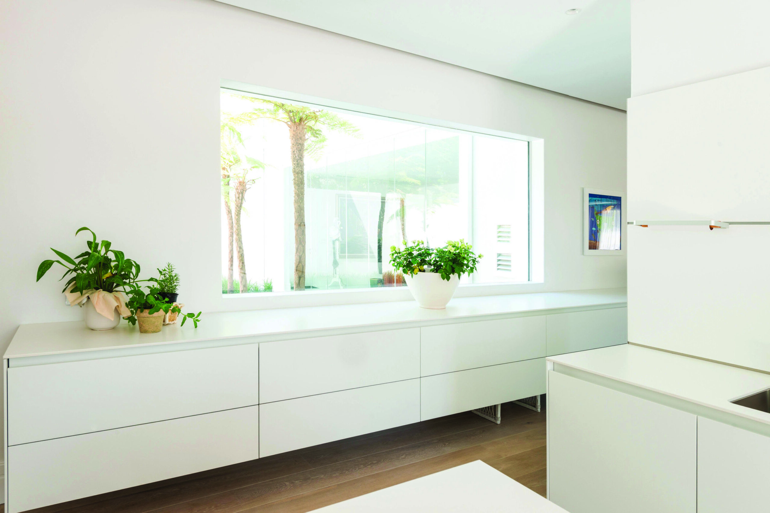 Für den Außenbereich rund um die Villa und die Poolzone wurde MegaWhite aus der Megalith Maximum Kollektion verwendet, inspiriert vom zeitlosen Charme des Natursteins. Die ultradünne 6-mm-Stärke vereint die Widerstandsfähigkeit des Feinsteinzeugs mit einfacher Verlegung. Die großen 300×100 cm Platten sorgen für visuelle Kontinuität und Leichtigkeit und verbinden die technischen Vorteile der Maximum-Linie mit den Vorzügen traditioneller Formate.